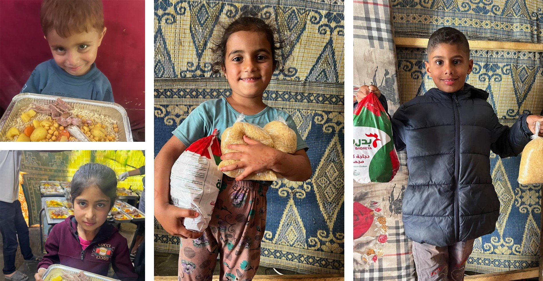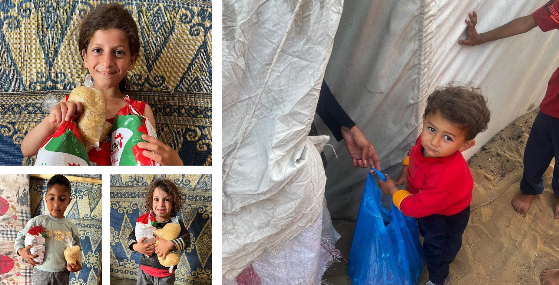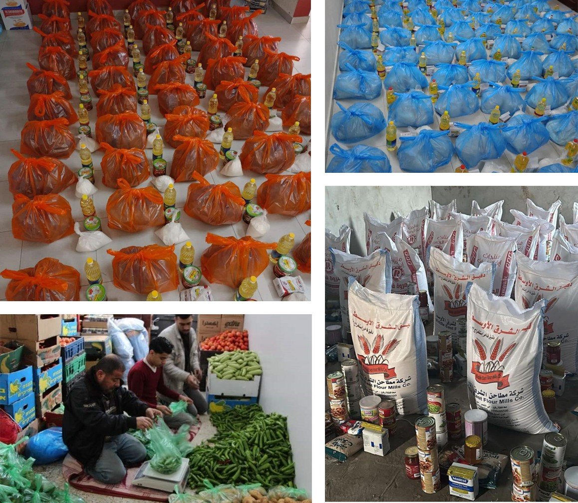 Parcels were distributed. Each parcel contains (1 liter of rice, 1 kilo of rice, 1 can of tahini, 2 cans of beans, 2 cans of cheese, and 2 cans of tuna) to 75 families in Gaza